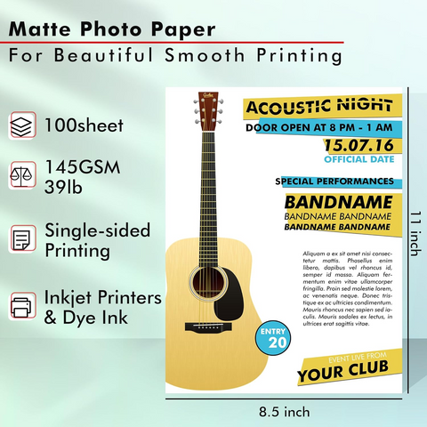 Koala Matte Photo Paper – 34lb(128gsm), 100 Sheets for Inkjet & Laser Printers, Flyers & Documents