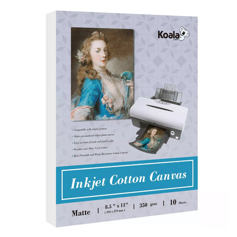 Koala 350gsm 100% Cotton Inkjet Canvas Paper – Matte Finish, 22mil Thick, 8.5x11", 10 Sheets for Fine Art & Photo Prints