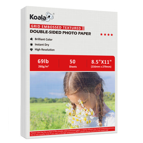 Koala Grid-Embossed Double-Sided Photo Paper – 69lb (260gsm), 8.5x11", 50 Sheets, Inkjet & Laser Compatible