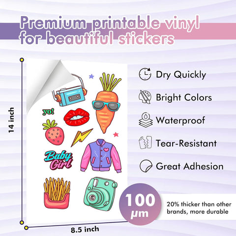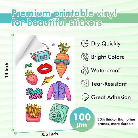 Koala Glossy Vinyl Sticker Paper – Waterproof, 8.5x14", 20 Sheets for Inkjet Printers, Great for Labels & DIY Stickers