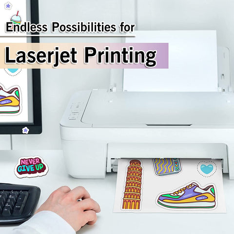 Koala Glossy White Waterproof Vinyl Sticker Paper – Printable Sheets for Laser Printers, 8.5x11", 10/20 Sheets