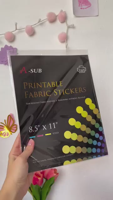 A-SUB Printable Fabric Sticker Paper – Inkjet Self-Adhesive Sheets, 8.5x11"