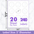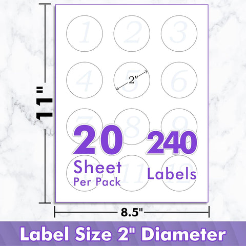 • Easy to Use - Print then its ready to use. Die-cut 2 inch circle labels save you much time on cutting labels. It's easy to peel the labels by simply bending the sheet back at the edges of the round labels.