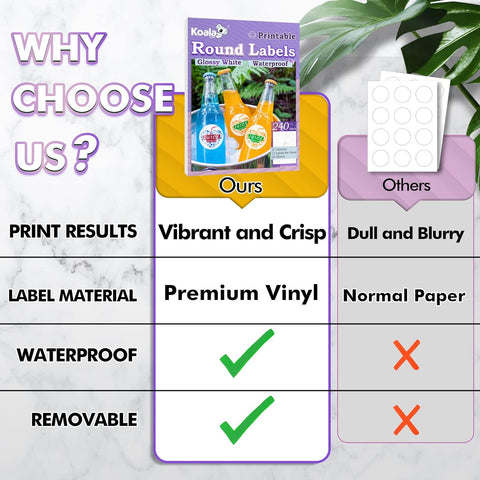• Waterproof Round Labels - Koala waterproof white glossy circle labels can be submerged in water without falling apart and holding up to tearing and scuffing. Suitable for more occasions.