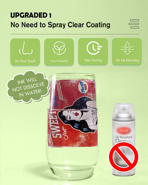• Time-saving, Convenient, Eco-friendly - The innovative coating can hold the ink well in water without any smearing issues. You'll not need to spray the coating to seal the ink anymore, which saves you much time of spraying and drying the clear coating, and frees you from the bad smell of the coating.